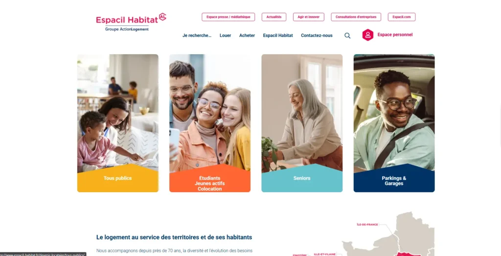 Espacil est un acteur majeur du logement social et de l’accession à la propriété en France. Filiale du groupe Action Logement depuis près de 70 ans, Espacil accompagne les ménages dans leur parcours résidentiel à travers deux entités complémentaires : Espacil Habitat pour la location de logements sociaux, et Espacil Accession pour devenir propriétaire dans le neuf. Implanté principalement en Bretagne, Loire-Atlantique et Île-de-France, l’organisme gère plus de 27 000 logements locatifs et propose des résidences adaptées à tous les profils : familles, étudiants, jeunes actifs, seniors ou personnes en situation de handicap.